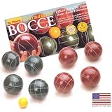 Bocce can be played any where - any time. You need no special setup for a friendly game. This set from St. Pierre Manufacturing is made in the USA using Partek composition resin. Roundness and balance are tightly controlled to guarantee they comply with International Bocce specifications for tournament play. These balls measure 107 mm, making them ideal for adults. The bright yellow pallina (target ball) or jack ball measures 57 mm, making it easy to spot even in longer grass. The balls are green and red for the two teams and within each color are clearly defined striping patterns on the balls when playing doubles matches. Just zip-and-go with the convenient nylon tote bag.