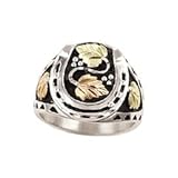 Gorgeous! Antiqued Black Hills Gold Men's Sterling-silver Horseshoe Ring. Great one of a kind ring! Classic style in this ring. Two 12K Black Hills Gold leaves in the middle of the Horseshoe and one on each side with the black antique background. Lifetime warranty from the manufacturer.